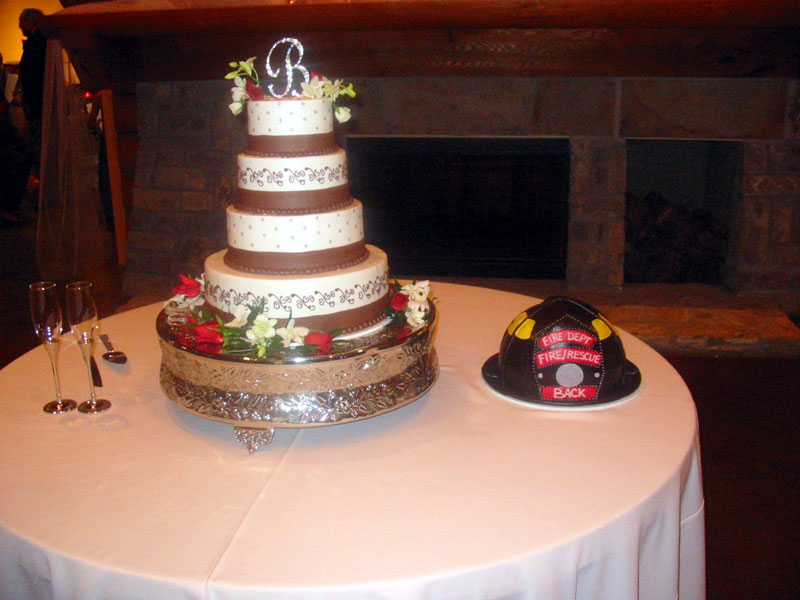 While all this was going on, Trish and Orion were celebrating a wedding in Tulsa, Oklahoma, with a fire hat cake. [figure c.]