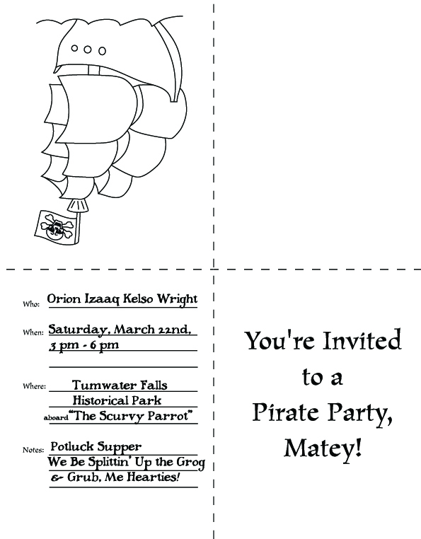 Saturday, we’re having a Pirate Themed party at Tumwater Historical Park.
