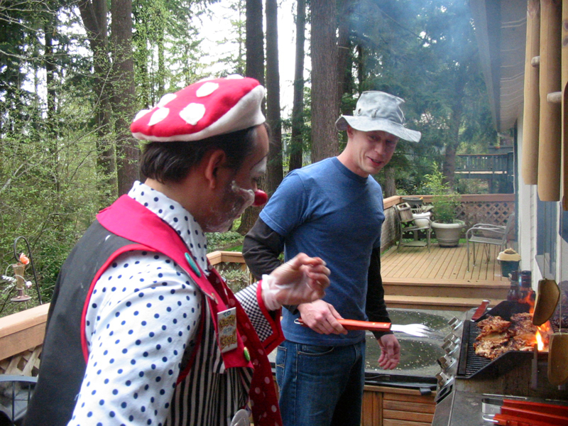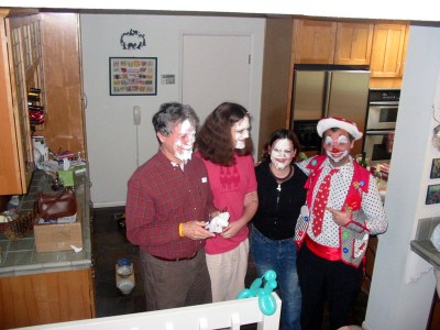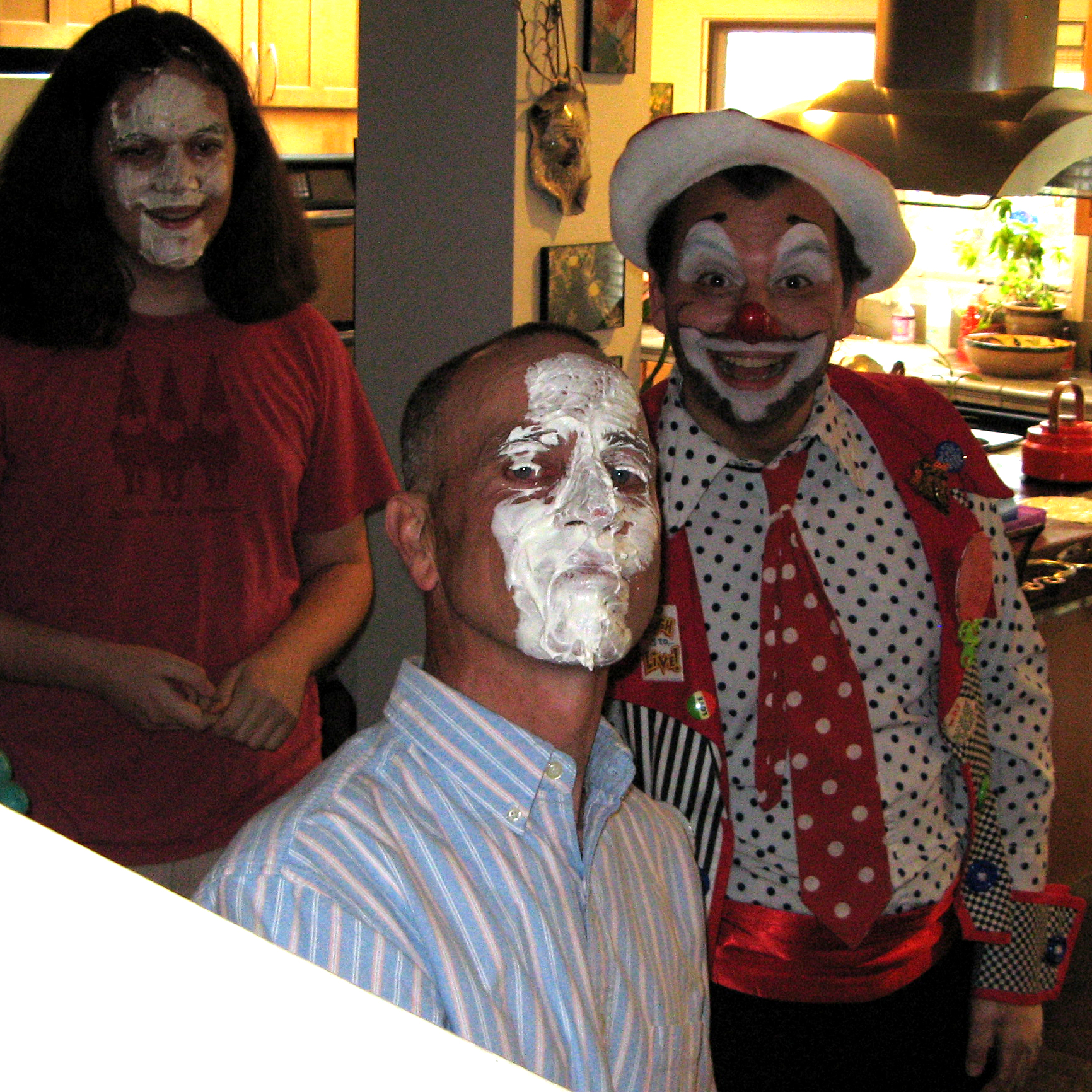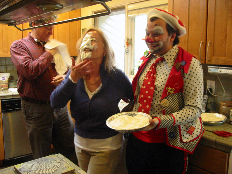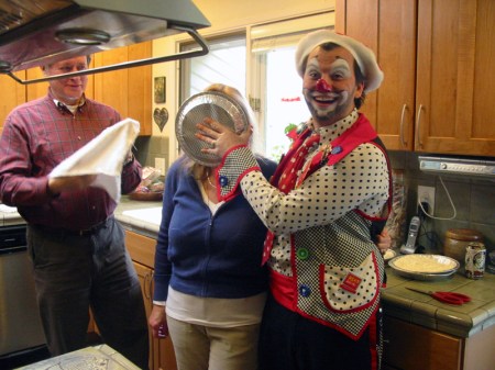 “Oh, Joe Nolan! How old are you turning, little boy? SIXTY!? Well, I’m in town doing all the April birthdays, and wait a minute… There’s another Nolan… Elisabeth Nolan had a birthday ON the sixth, okay. And this guy here… When is your birthday, little boy? May? Well, I won’t be here then. It’s kind of a significant one, isn’t it? Eighteen. Yeah, I think you’re on the list for a pie too.”