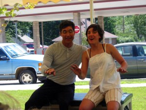 Mike let me know he chooses music that is ‘weak’ in order that the mime will be strong. In this way, the music does not direct his movements as with some students he has seen who insist on matching their mime to every beat. It’s more transparent. It creates the mood. It creates a bridge between the performer and the audience. I’m excited to pick out some music for my next gig. [For the EF school I used music during the house warming and exiting.]
