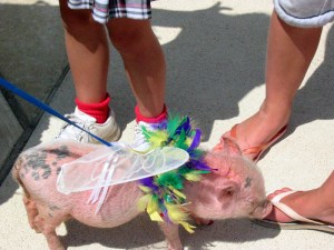 Here’s her pig. She’s got a traveling petting zoo.