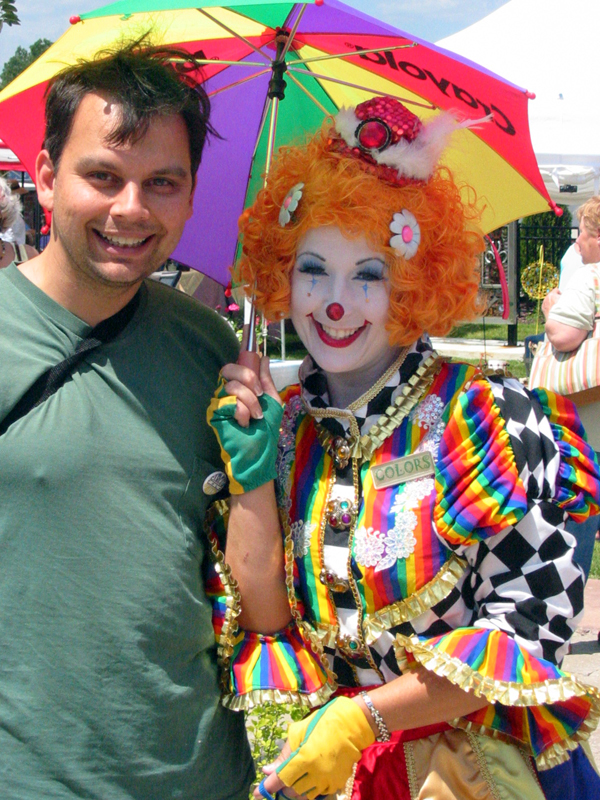 After we saw Mike the Mime perform we decided to go back through the Chelsea Summer fest toward the car. We discovered that we’d just missed the stage show of Colors the Clown, but I stopped her for a photo op and gave her my card. She didn’t have any of hers left, but she said that she was ‘in the book’. I told her that I wanted to get together and share clown info as I put together my business plan.
