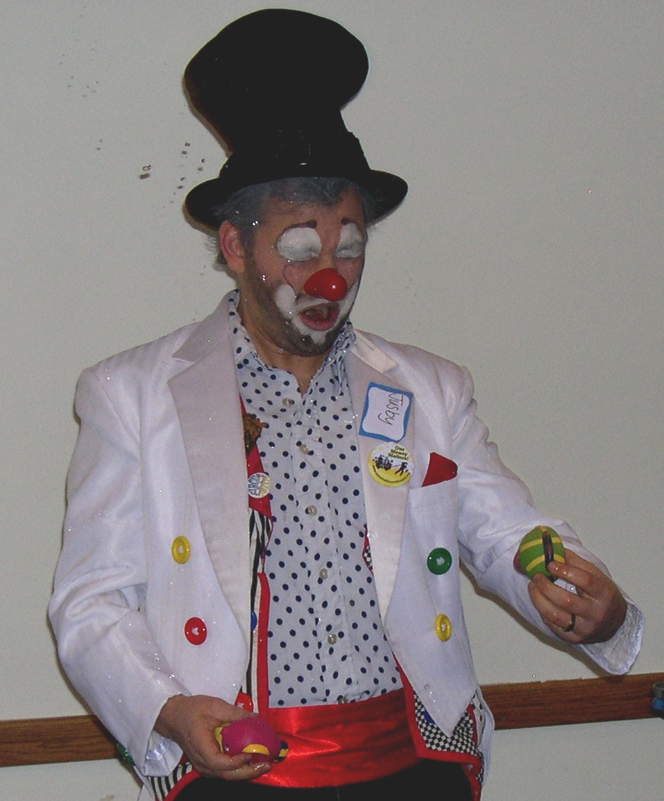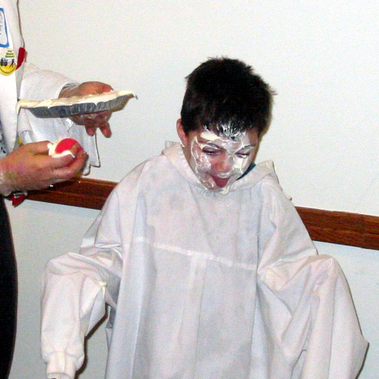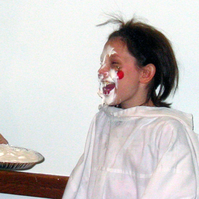Pies-in-the-face: Be ready for TALLER participants: stand on stool or chair or have them kneel. Bring tarp to avoid carpet stains. Let participants keep smock on while they wipe face. Ask how long participants can hold their breaths. Have audience count! Use bio-hazard bag for finished pies and returned towels!
