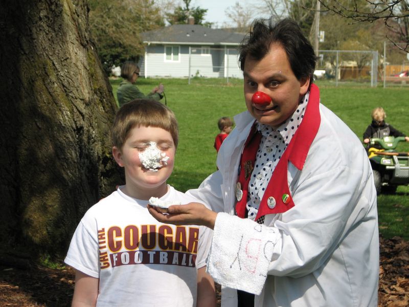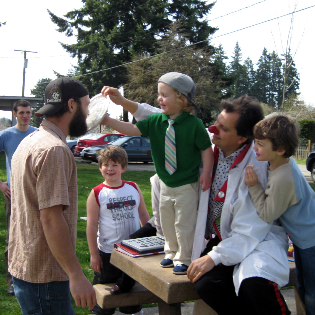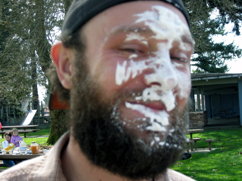 Tait was just hanging out in the park with his sister. I asked if he wanted a pie-in-the-face, and he asked his dad if it was okay.