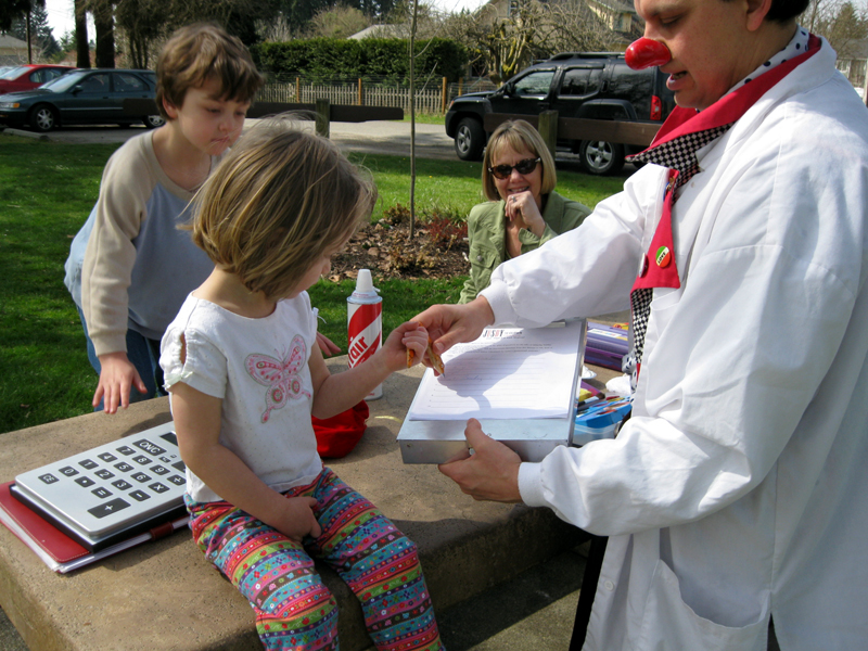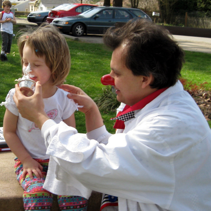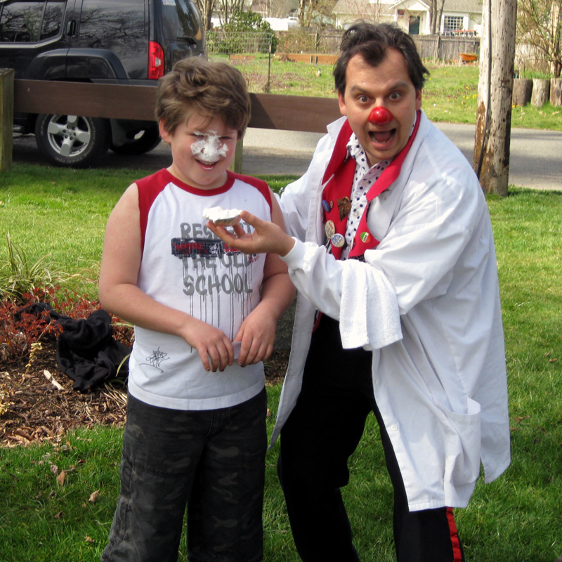 I went over with clipboard and asked, “Pie in the face?”