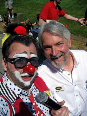 They’re slammed with a lunch rush that doesn’t quit.  People are also enjoying the new patio.  I pull into a parking spot and get instant window service.  I order small tots.  Then I call Mike Fritsch on his cell to see if he’s got any whipped cream… maybe I could squeeze in a pie-ing today.  He’s way to busy to consider that.  Instead of change back, the waitress returns my money and says, “Happy Clown Day from Mike!”