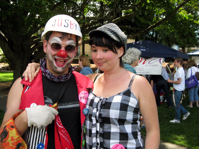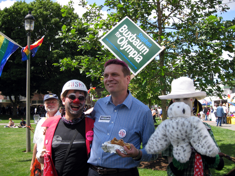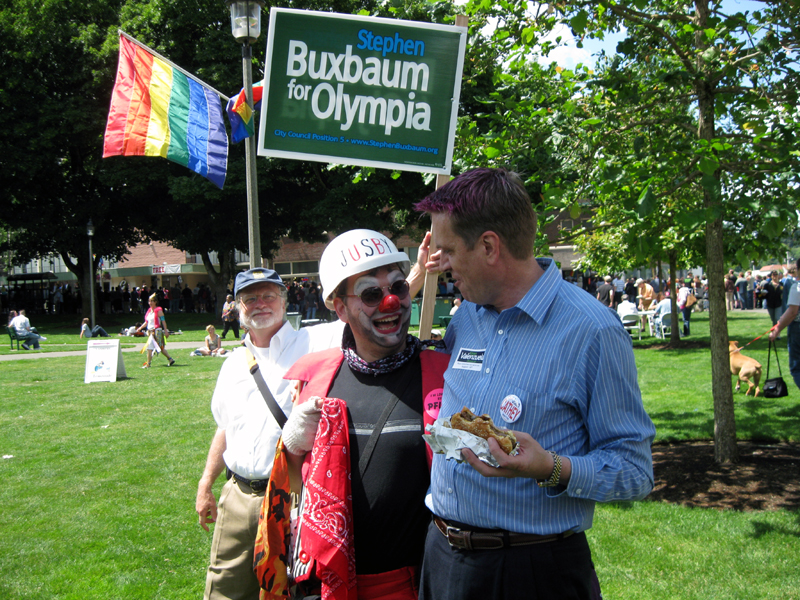 Afterward, at Sylvester park, Honey marched right over to a group of Buxbaum supporters. She told them she was glad they were there because Kingsbury had his signs all over the place. I arrived from the other side and called to her to get a picture with me and Kingsbury having a burger.