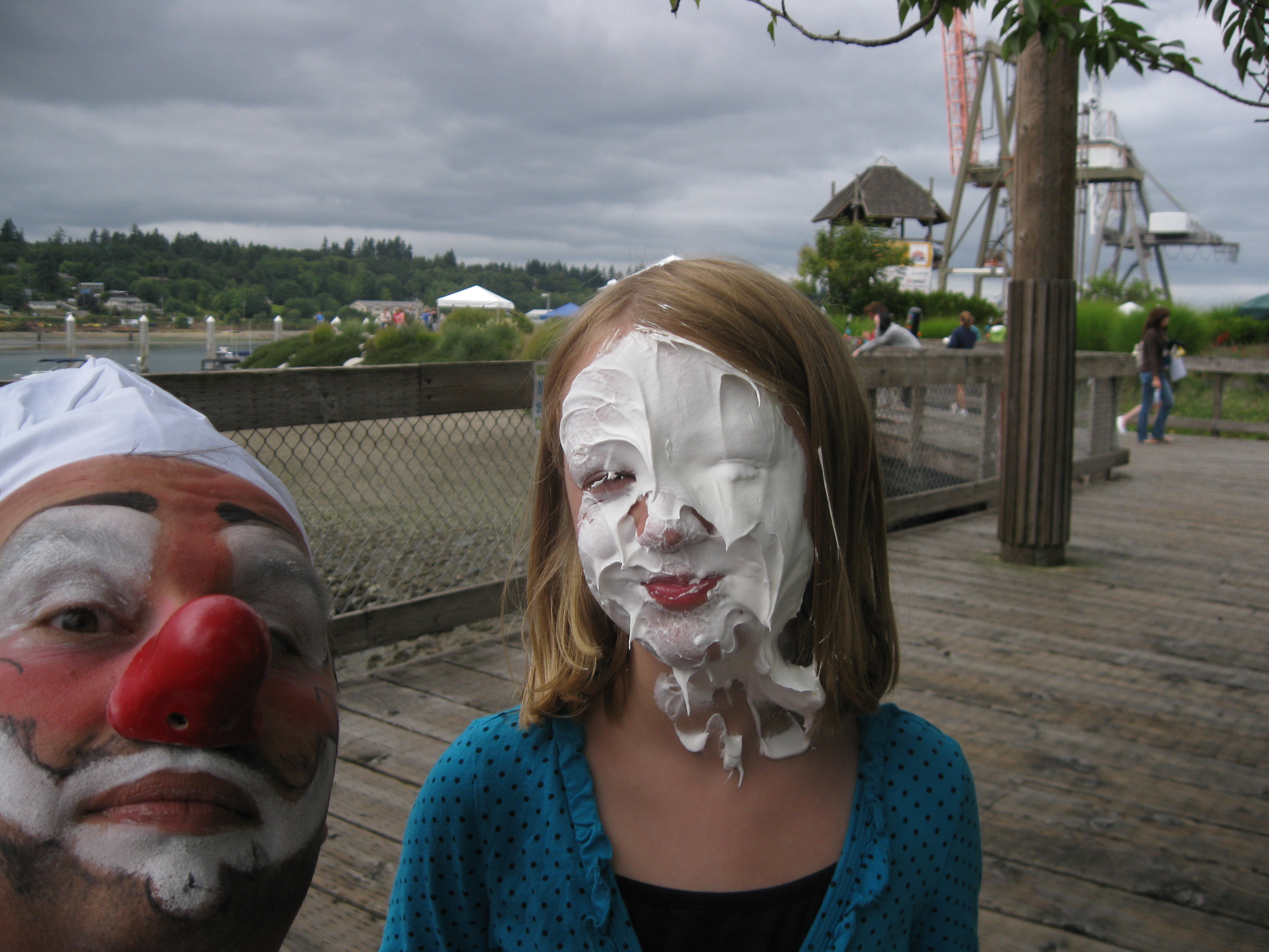 Then I got prepared for an event to which I was actually invited, a year end BBQ for the Thurston Parks Summer Camp. Sarah Alexander had finally agreed to be pied. She figured it would go over great in front of the kids, and I could even bring mine. She even estimated that I might find up to EIGHT willing faces including her own. Although it would be another volunteer gig I considered it a better publicity stunt and a safe, appropriate surprise that would be a profoundly memorable way to celebrate.