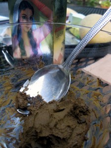 Mixing up the Henna to practice the Mehndi hands and feet.
