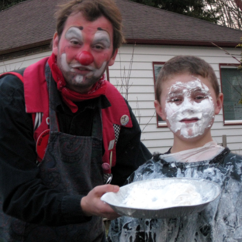 Afterwards, I pied a bonus face back home. AJ had been visiting and took a large pie to the face.