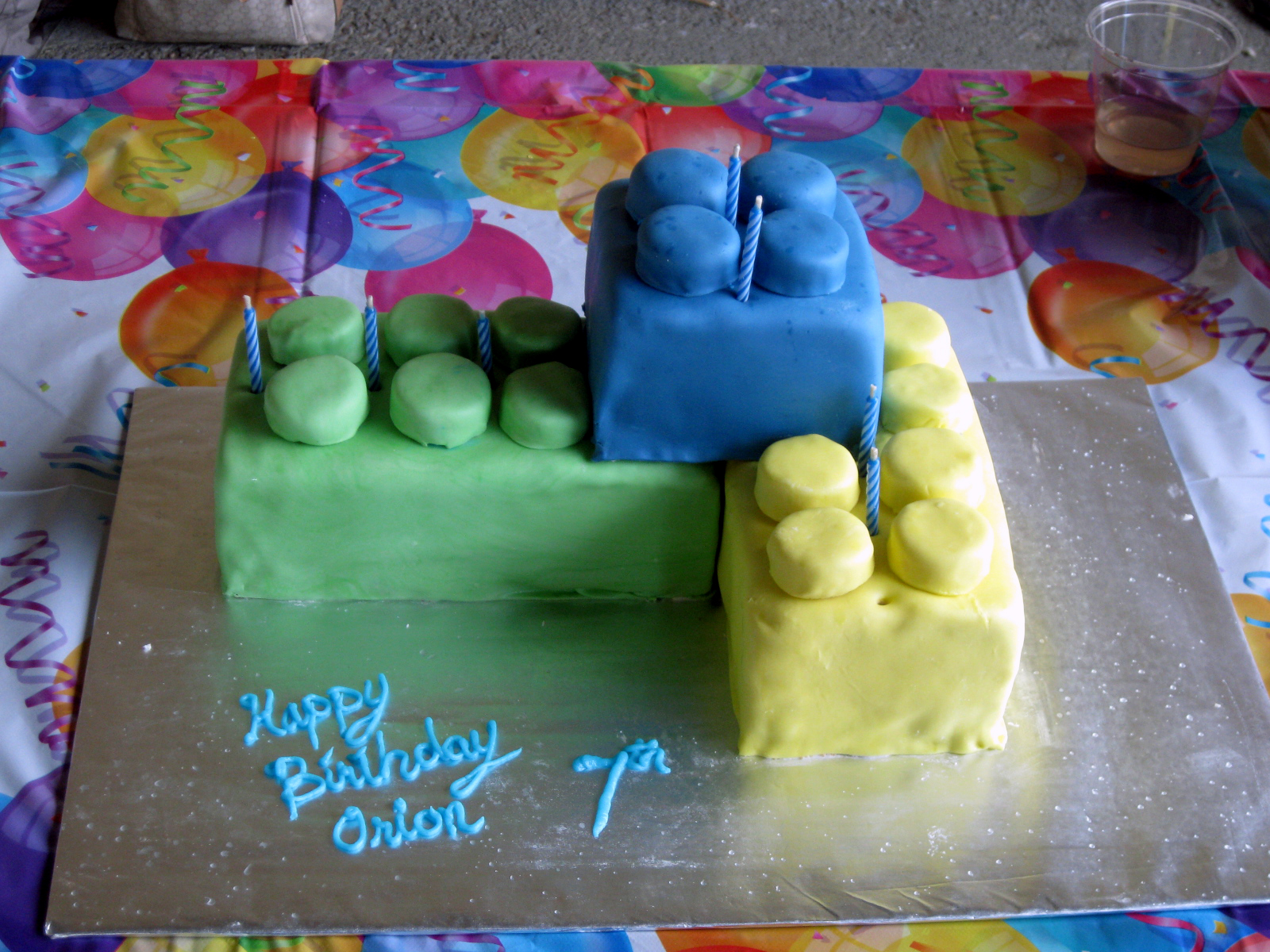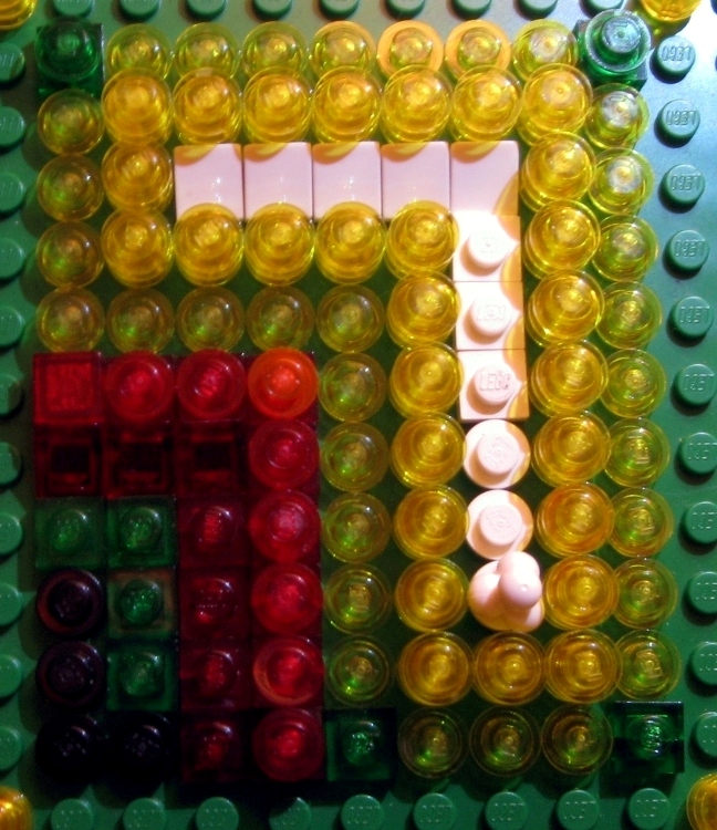 Here’s the artwork for Orion’s Birthday invitation. Those are Lego 1xs (One By’s). The bottom of the seven is a piece that represents scoops of ice cream.