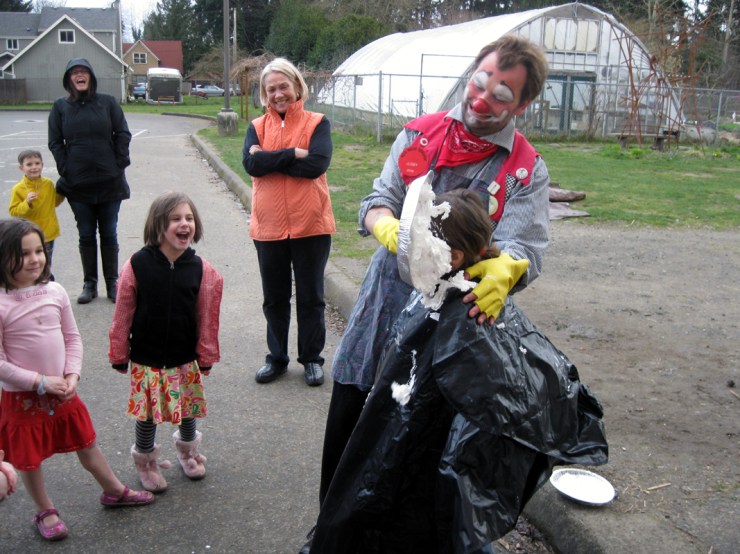 Birthday Boy gets the first pie in the face!