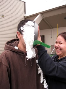 Consequently, of course, a dude got pied!