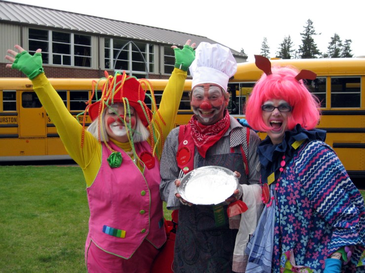 This year’s Lacey Spring Fun Fair entry by the Red Nose Brigade included: Jusby, Sprout, Bean Sprout, Lilly, Buzzy, Stormy & Bubble~Trouble.