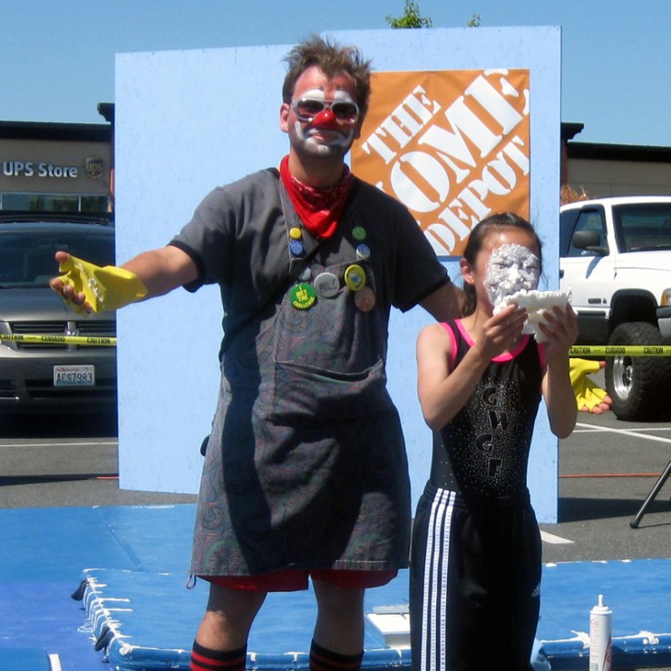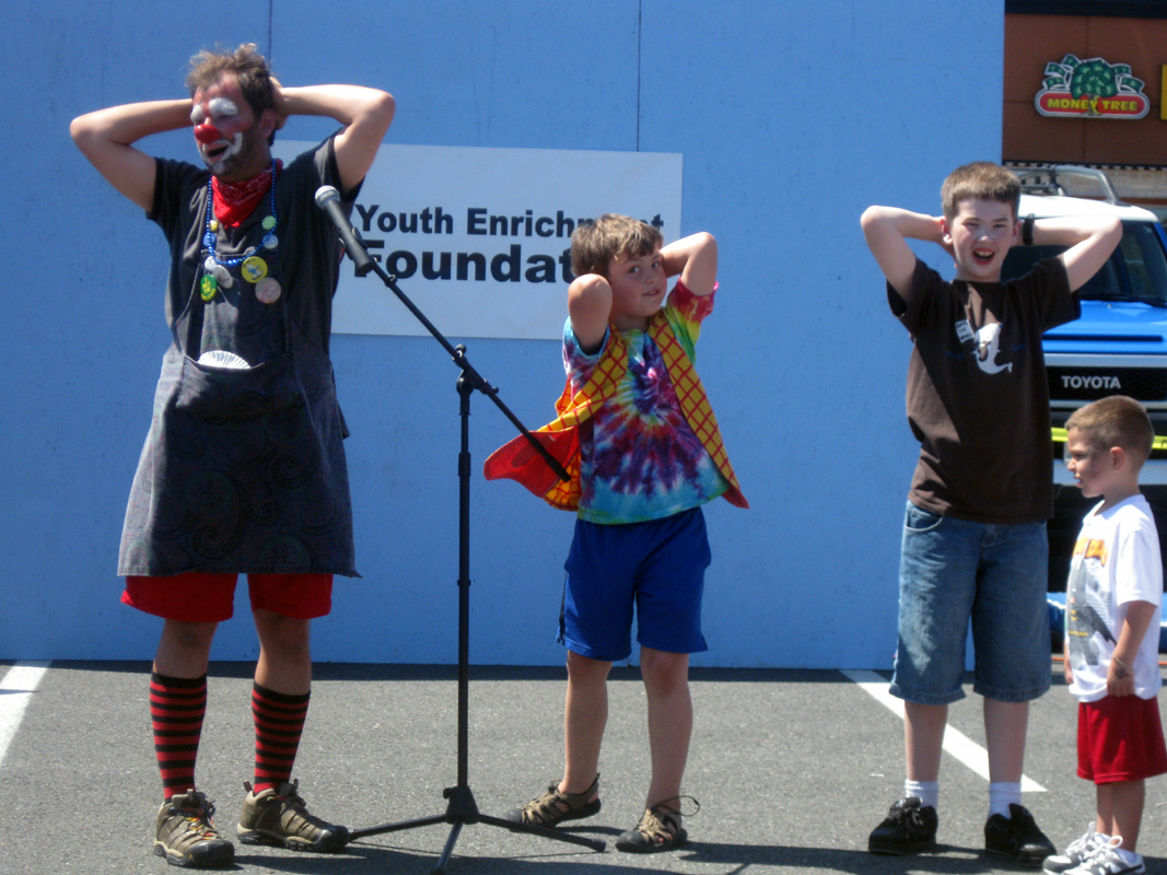 I recently jointed the Youth Enrichment Foundation as a Platinum Participating Merchant > You can now buy $100 gift checks through them toward my services. They invited me out to their annual Block Party at the Hawk’s Prairie Home Depot Parking lot. They had 60 vendors and shows every hour on the hour. I took the 2 o’clock spot and also offered to improvise during set changes with some witty banter. Since I was so close to breaking the 500th pie mark I played that up.
