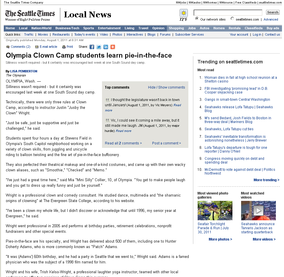 I got a message on my phone that some DJ’s on 92.9 KISM Classic Rock saw the Seattle Times feed about clown camp and would like to talk to me…