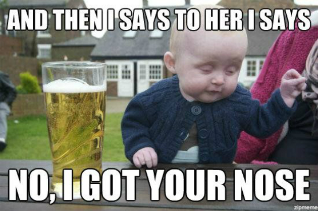 After a moment the bartender says, “Hey! You gotta be 21 YEARS old, not 21 WEEKS old! Get outta here!”