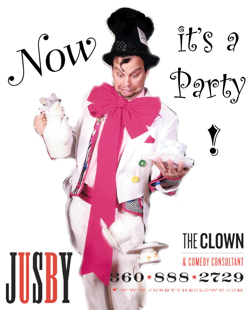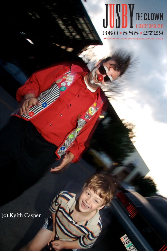Jusby the Clown is a clown, comedy consultant, and full-service party concierge for children’s birthday parties, adult events, singing telegrams, brick readings, and laughter-based workshops across Portland, OR and the I-5 corridor from Seattle to Eugene.
