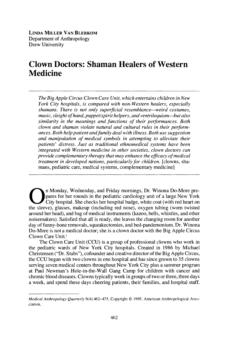 Download the pdf> Blerkom-Clown-Doctors-Shaman-healers-of-western-medicine