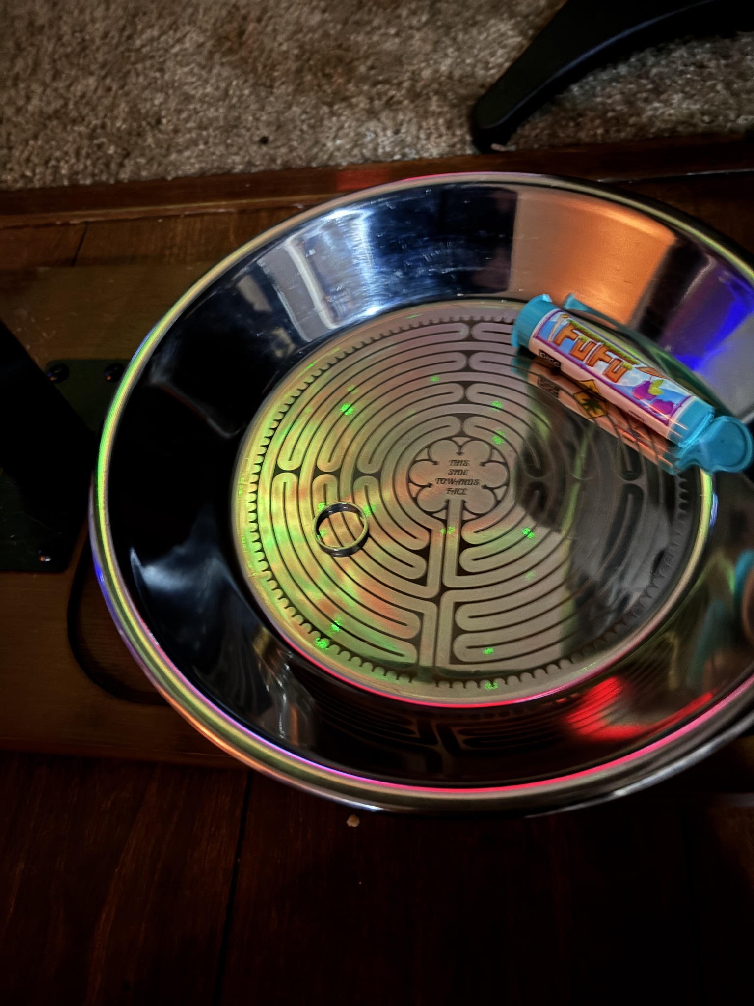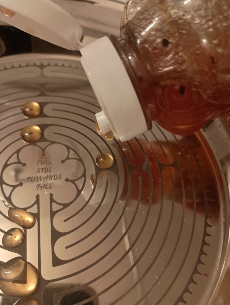 - Hand-etched labyrinth pattern