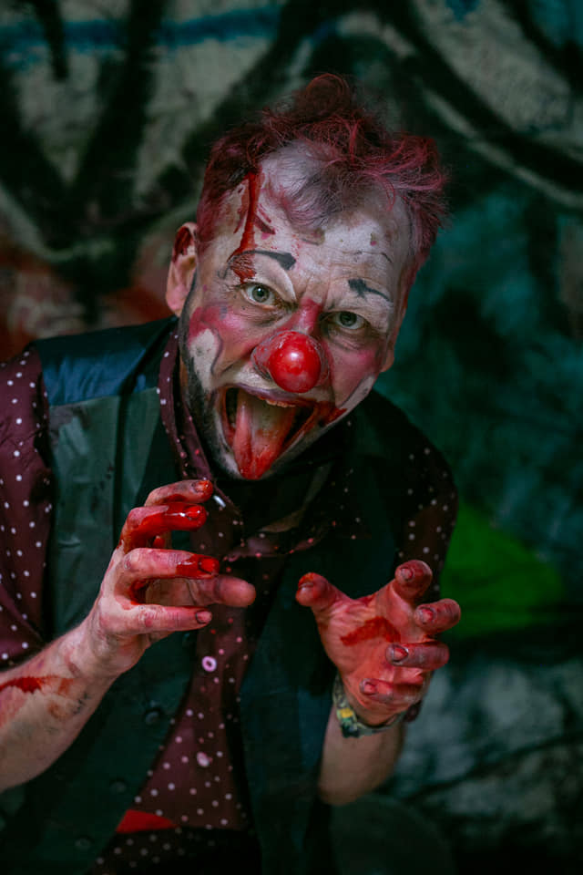 Each year during the month of OctoberJusby will be available to capitalize on the widespread fear of clowns as a professional addition to a Haunt.